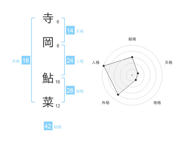 寺岡 鮎菜さんの天格は14画の1点!