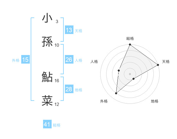 小孫 鮎菜さんを姓名の画数から五運を鑑定