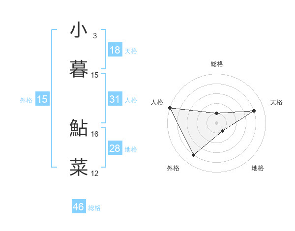 小暮 鮎菜さんの天格は18画の4点!