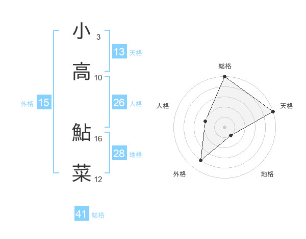 小高 鮎菜さんを姓名の画数から五運を鑑定