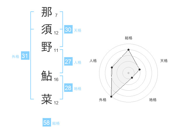 那須野 鮎菜さんを姓名の画数から五運を鑑定