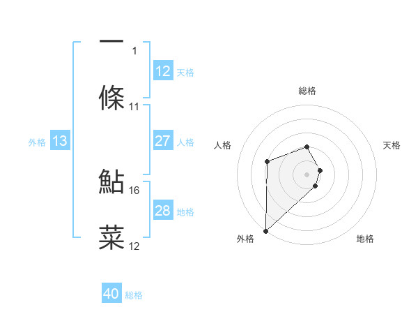 一條 鮎菜さんを姓名の画数から五運を鑑定