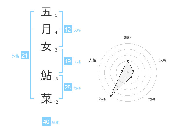 五月女 鮎菜さんの総格は40画の2点!