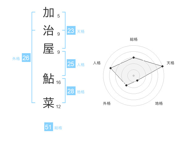 加治屋 鮎菜さんを姓名の画数から五運を鑑定