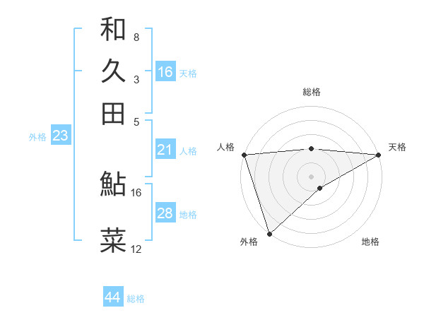 和久田 鮎菜さんを姓名の画数から五運を鑑定