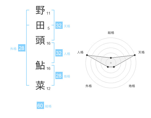 野田頭 鮎菜さんの天格は32画の5点!