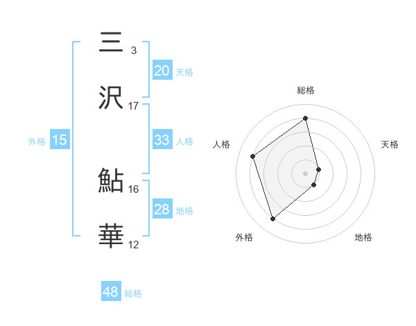 三沢 鮎華さんの総格は48画の4点!