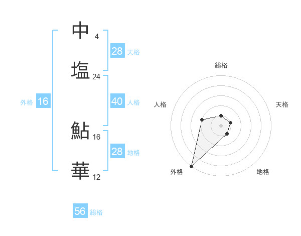 中塩 鮎華さんの地格は28画の1点!
