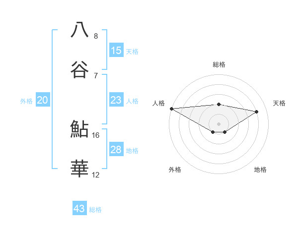 八谷 鮎華さんを姓名の画数から五運を鑑定