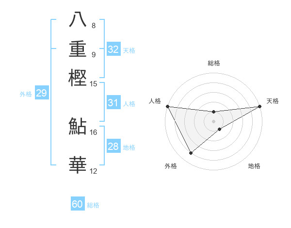 八重樫 鮎華さんの天格は32画の5点!