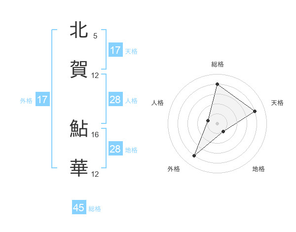 北賀 鮎華さんを姓名の画数から五運を鑑定