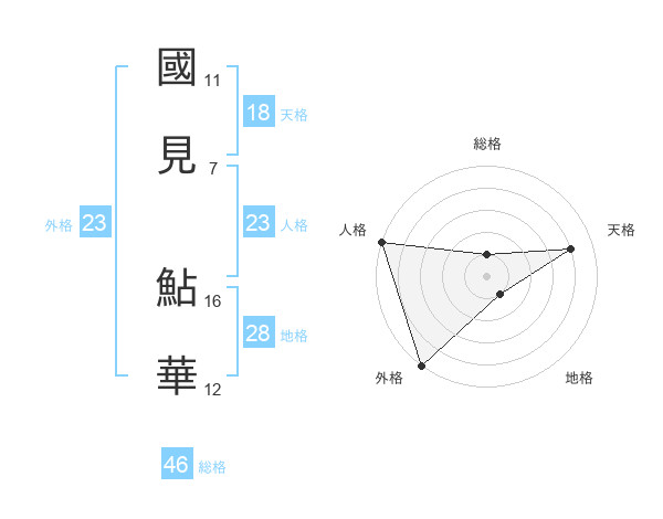 國見 鮎華さんの人格は23画の5点!