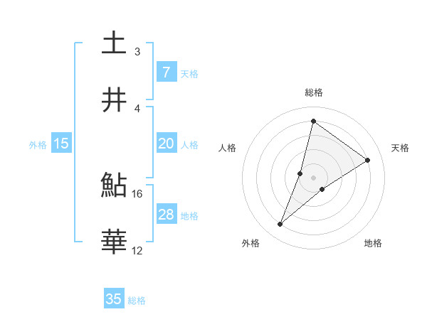 土井 鮎華さんを姓名の画数から五運を鑑定