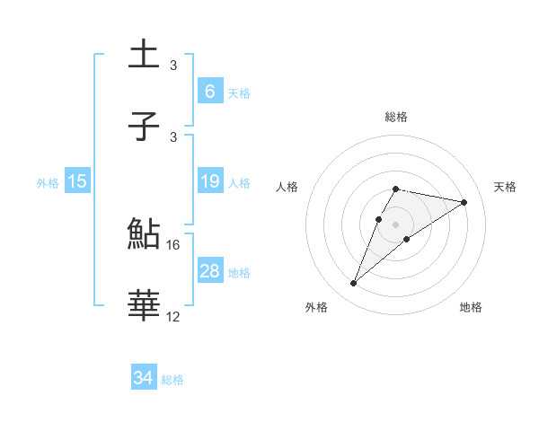 土子 鮎華さんを姓名の画数から五運を鑑定