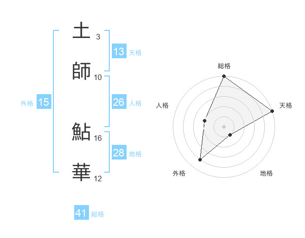 土師 鮎華さんの総格は41画の5点!