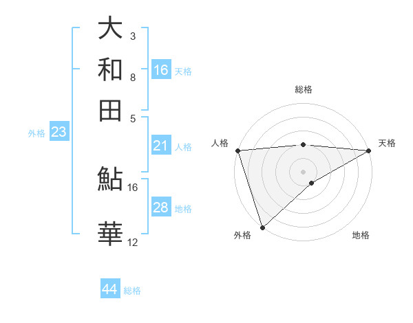 大和田 鮎華さんを姓名の画数から五運を鑑定