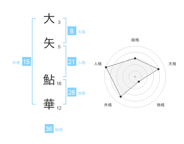 大矢 鮎華さんを姓名の画数から五運を鑑定