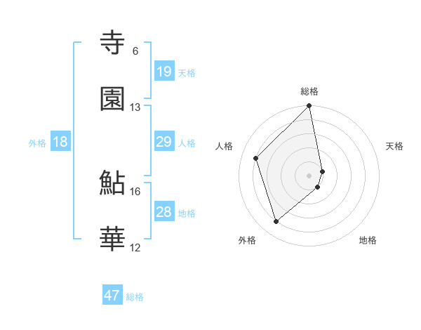 寺園 鮎華さんを姓名の画数から五運を鑑定