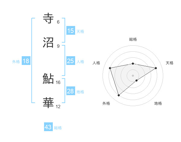 寺沼 鮎華さんの総格は43画の2点!