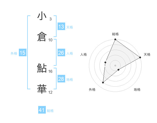 小倉 鮎華さんを姓名の画数から五運を鑑定