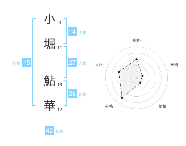 小堀 鮎華さんを姓名の画数から五運を鑑定