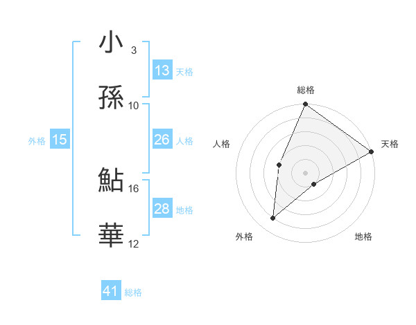 小孫 鮎華さんの総格は41画の5点!