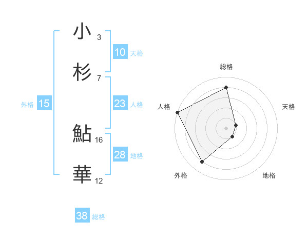 小杉 鮎華さんを姓名の画数から五運を鑑定