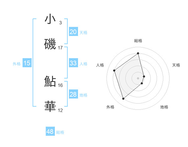 小磯 鮎華さんの総格は48画の4点!