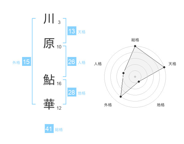 川原 鮎華さんを姓名の画数から五運を鑑定