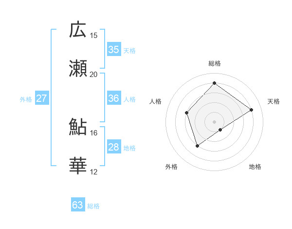広瀬 鮎華さんの総格は63画の4点!