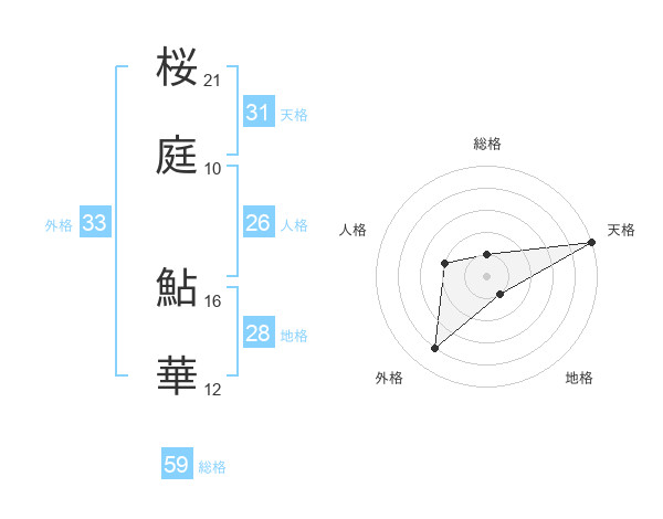 桜庭 鮎華さんの天格は31画の5点!