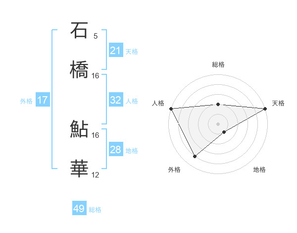 石橋 鮎華さんの総格は49画の2点!
