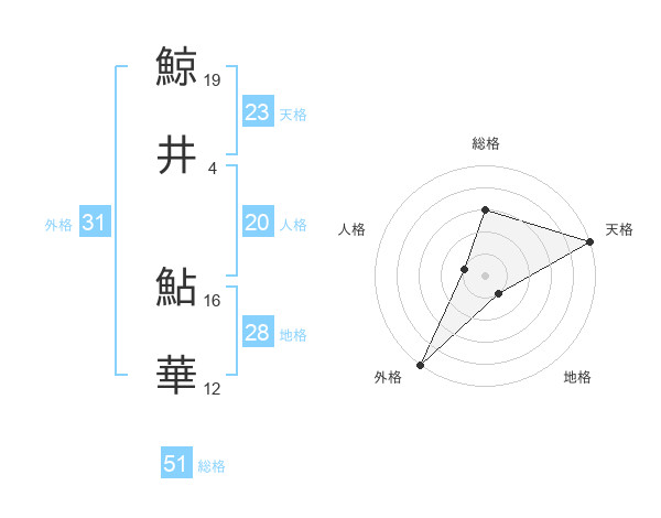 鯨井 鮎華さんの外格は31画の5点!