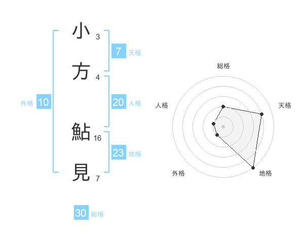 小方 鮎見さんの総格は30画の2点!