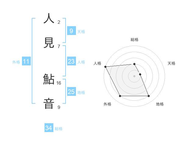 人見 鮎音さんの総格は34画の2点!