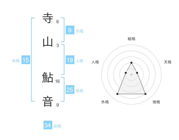 寺山 鮎音さんの総格は34画の2点!