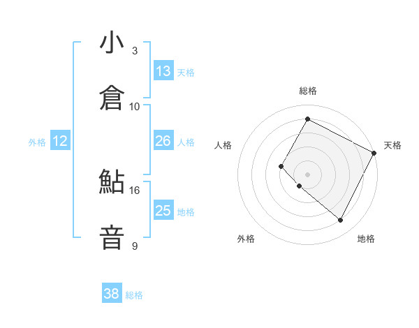 小倉 鮎音さんの総格は38画の4点!