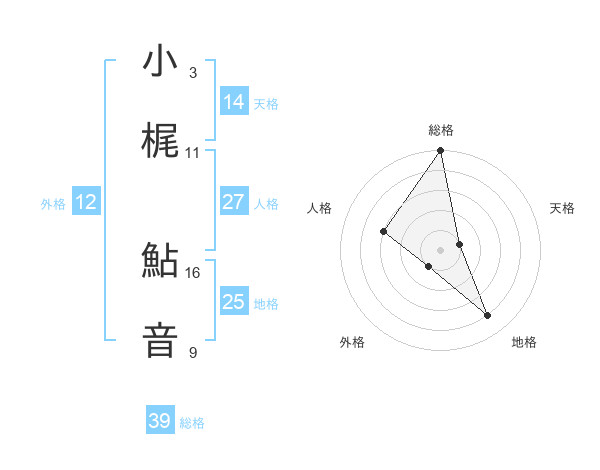 小梶 鮎音さんの総格は39画の5点!