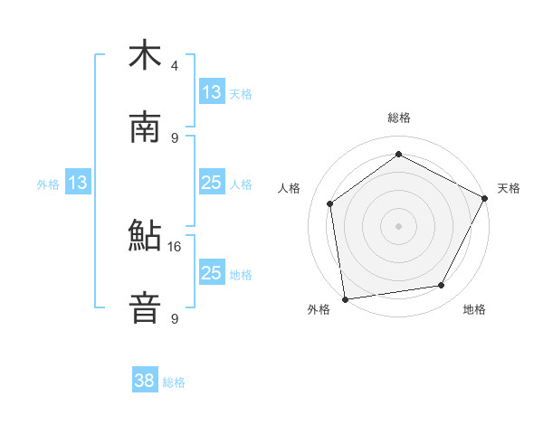木南 鮎音さんの総格は38画の4点!
