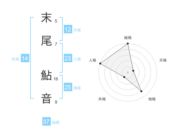 末尾 鮎音さんの総格は37画の5点!