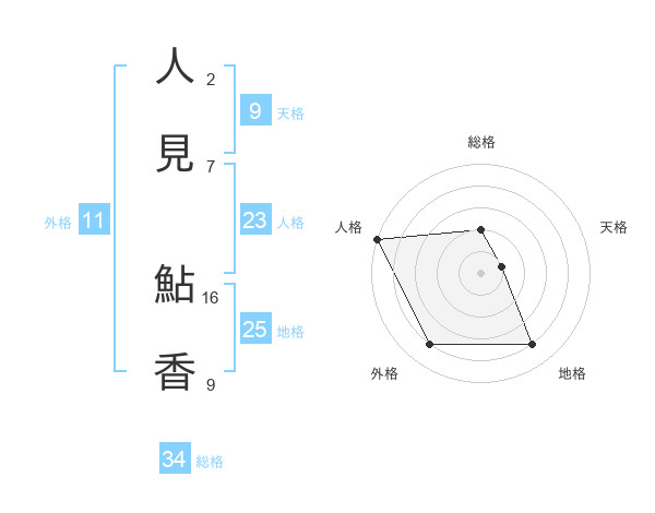 人見 鮎香さんを姓名の画数から五運を鑑定