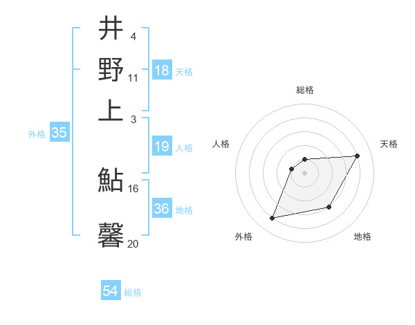 井野上 鮎馨さんの天格は18画の4点!