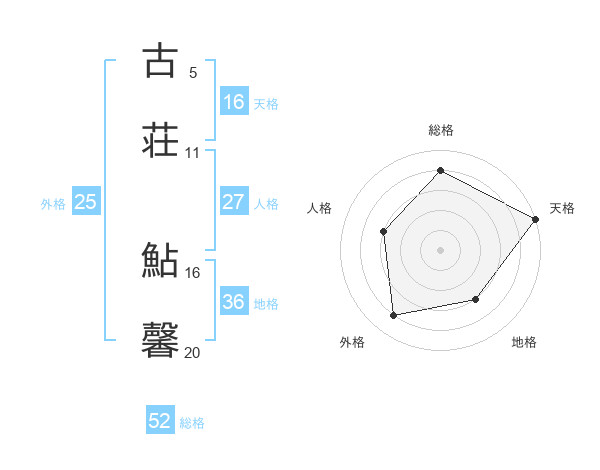 古荘 鮎馨さんを姓名の画数から五運を鑑定