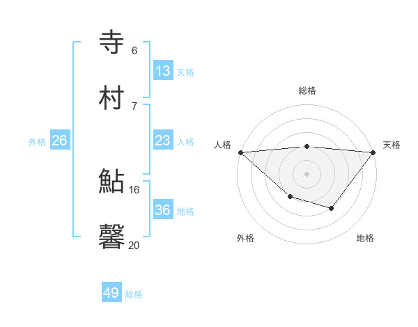 寺村 鮎馨さんを姓名の画数から五運を鑑定