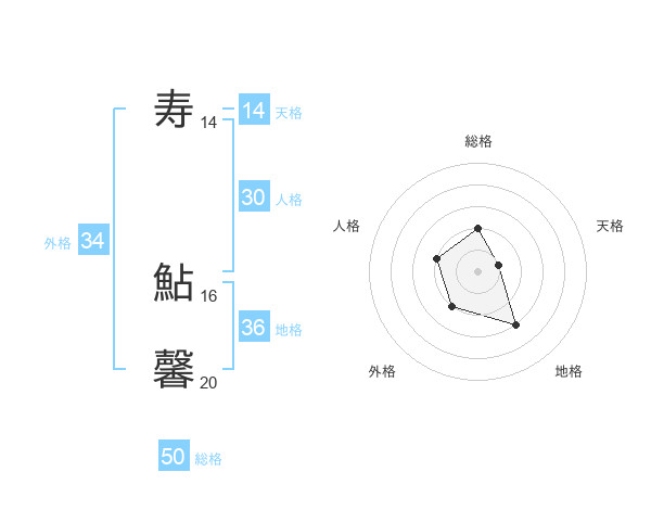 寿 鮎馨さんの総格は50画の2点!