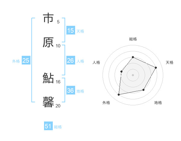 市原 鮎馨さんの総格は51画の3点!