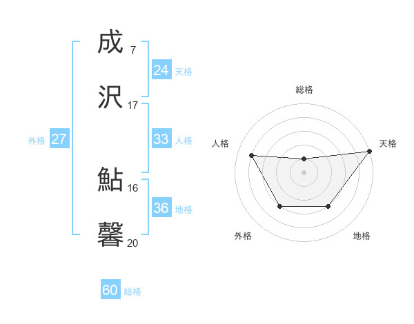 成沢 鮎馨さんを姓名の画数から五運を鑑定