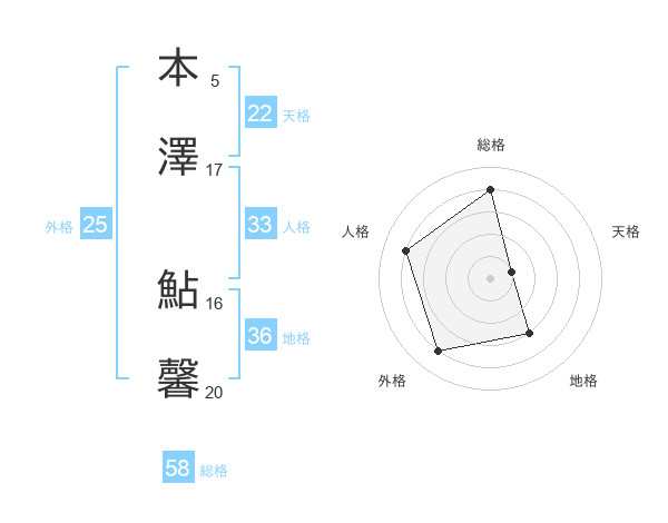 本澤 鮎馨さんを姓名の画数から五運を鑑定