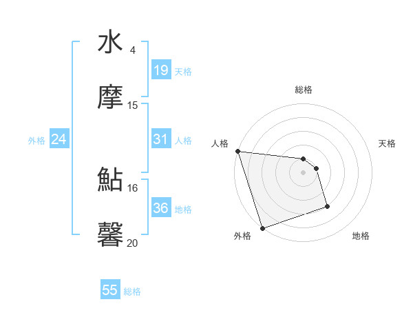 水摩 鮎馨さんの総格は55画の1点!