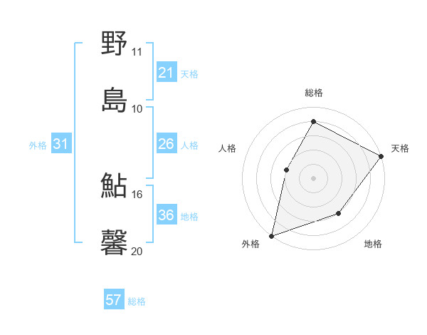 野島 鮎馨さんの総格は57画の4点!